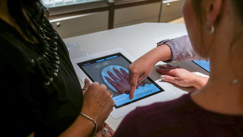 Helzberg Diamonds, a nationwide jewelry retailer, has utilized augmented reality technology to allow customers to see how different rings will look on their fingers to help them make a purchase decision. Called the Virtual Ring Experience, the AR kiosk enables a personalized, endless aisle shopping experience.