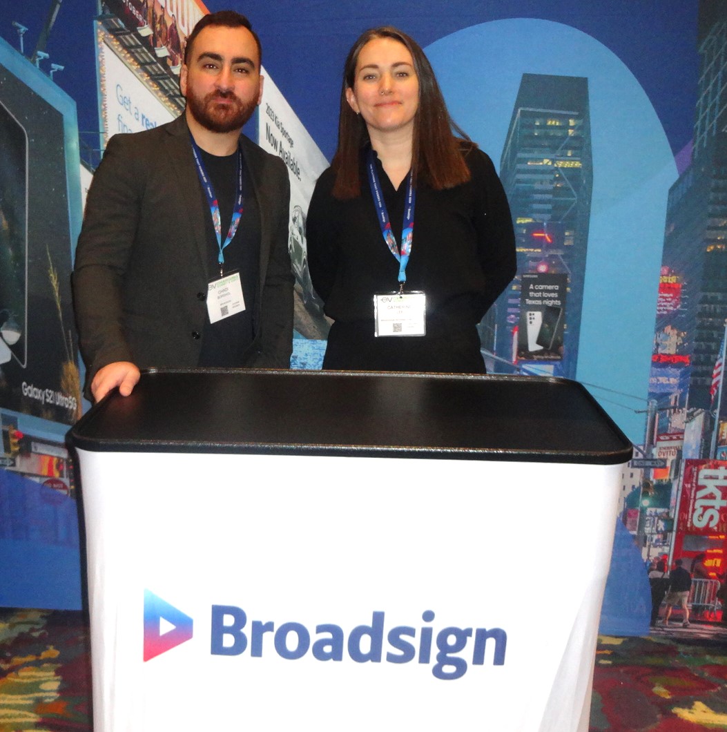 Chadi Berghol and Catherine Lee present the digital-out-of-home advertising offering for EV charging stations at the Broadsign International exhibit. |