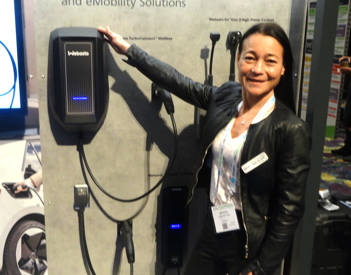 Monika Udri-Wetzel presents the Wallbox energy management system at the Webasto Charging Systems Inc. exhibit. |