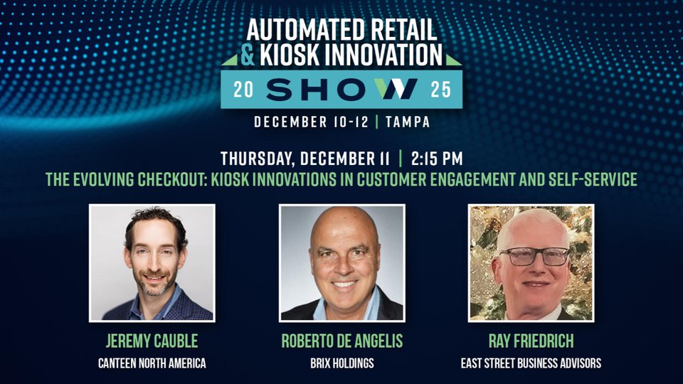 Cauble and Friedrich, along with Roberto De Angelis, chief experience officer at Brix Holdings, are participating in a panel talk, "The Evolving Checkout: Kiosk Innovations in Customer Engagement and Self-Service," at the upcoming Automated Retail & Kiosk Innovation Show, being held December 10-12 in Tampa, Florida.