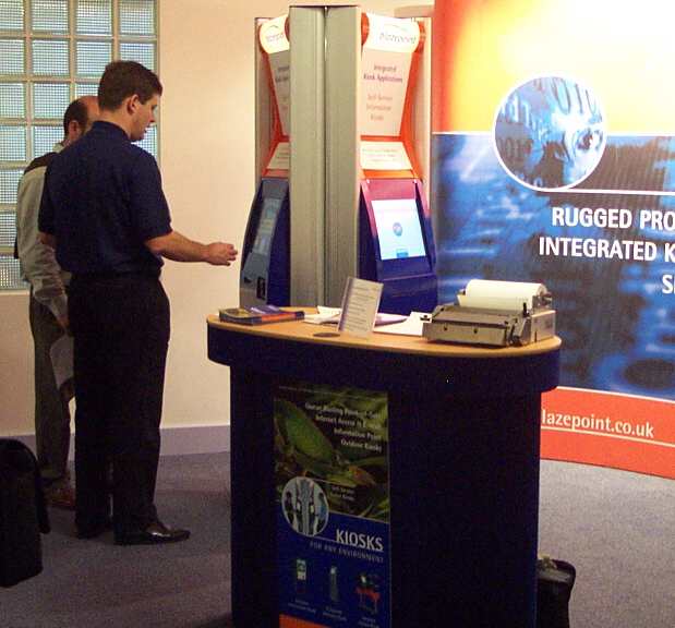 Blazepoint exhibited outside the seminar hall during Kiosks 2002 in London. |