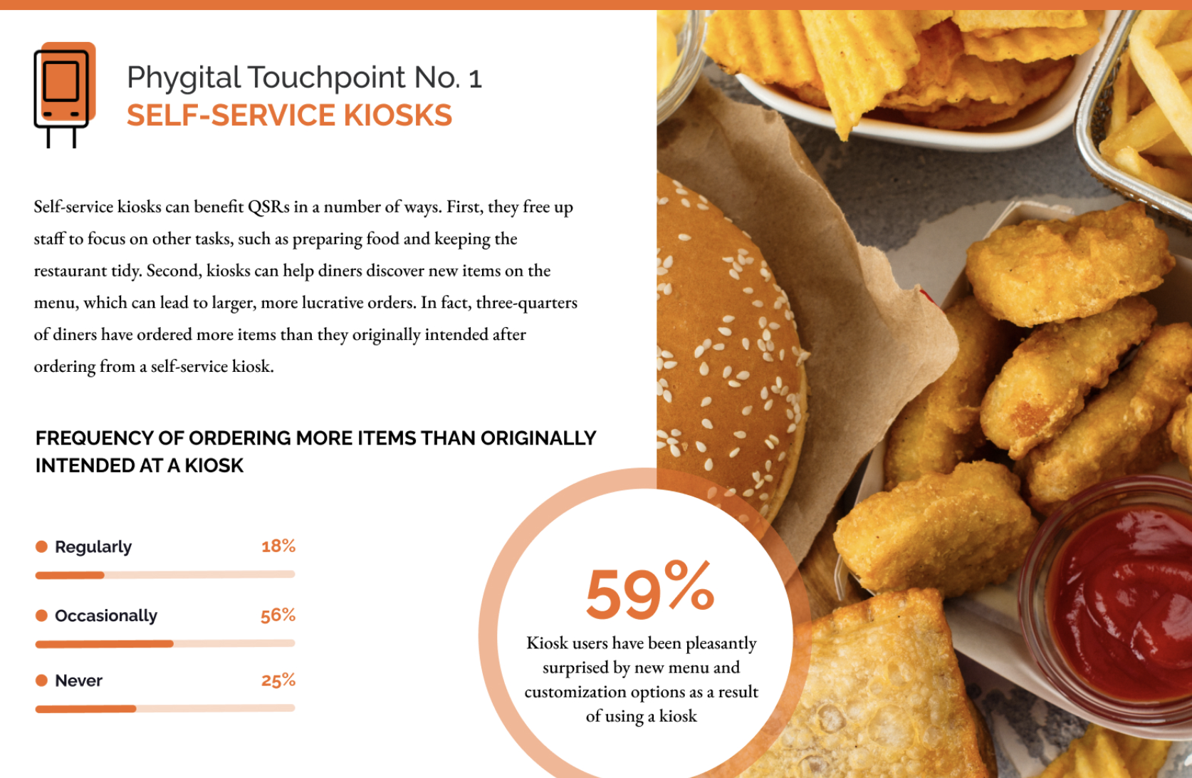 A 59% majority of kiosk users have been pleasantly surprised by new menu and customization options as a result of using a kiosk.