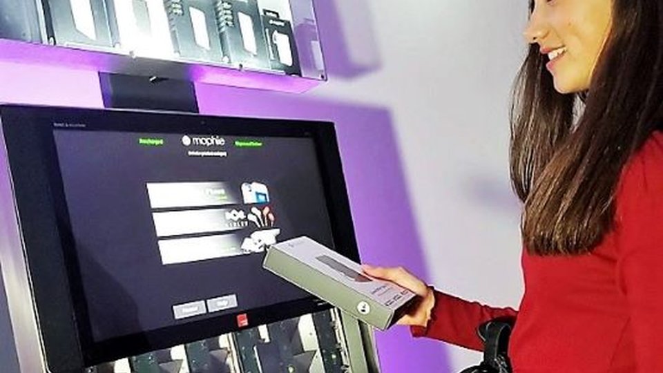 The goal is now to raise funds to manufacture kiosks and deploy Mophie kiosks for personal electronics and chargers in locations like convention centers and train stations that are not designed for retail.