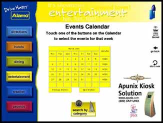 Alamo's Fun Finder Kiosk is the first kiosk deployed using Sun Microsystems' newest internet appliance technology. The Sun Ray Appliance allows for ease of administration with the latest plug and play, thin client technology.