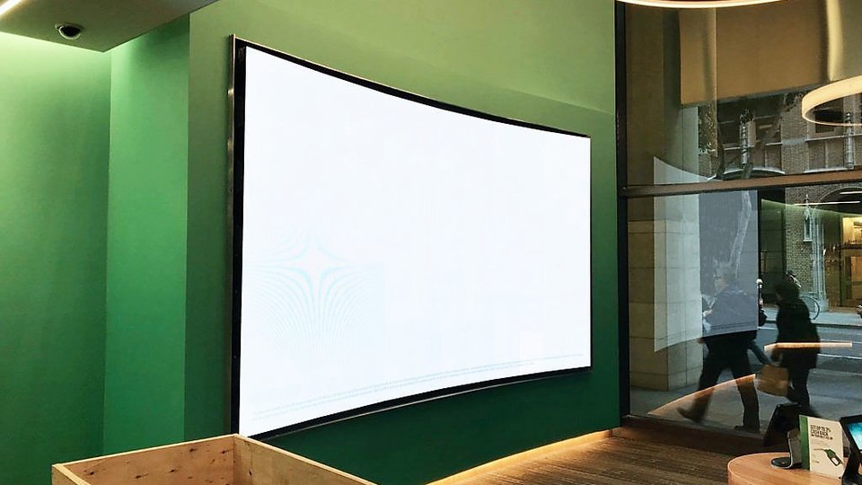 The bank headquarters location includes a 165-inch curved LED wall, displayed through the front window.