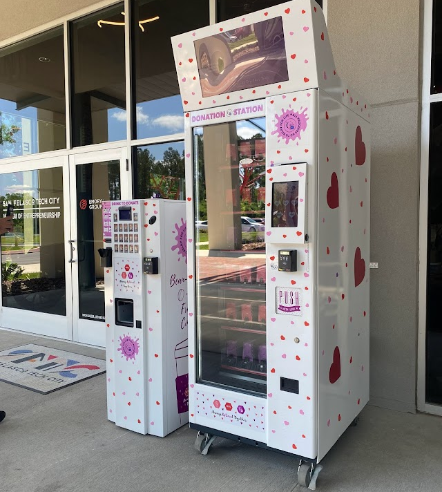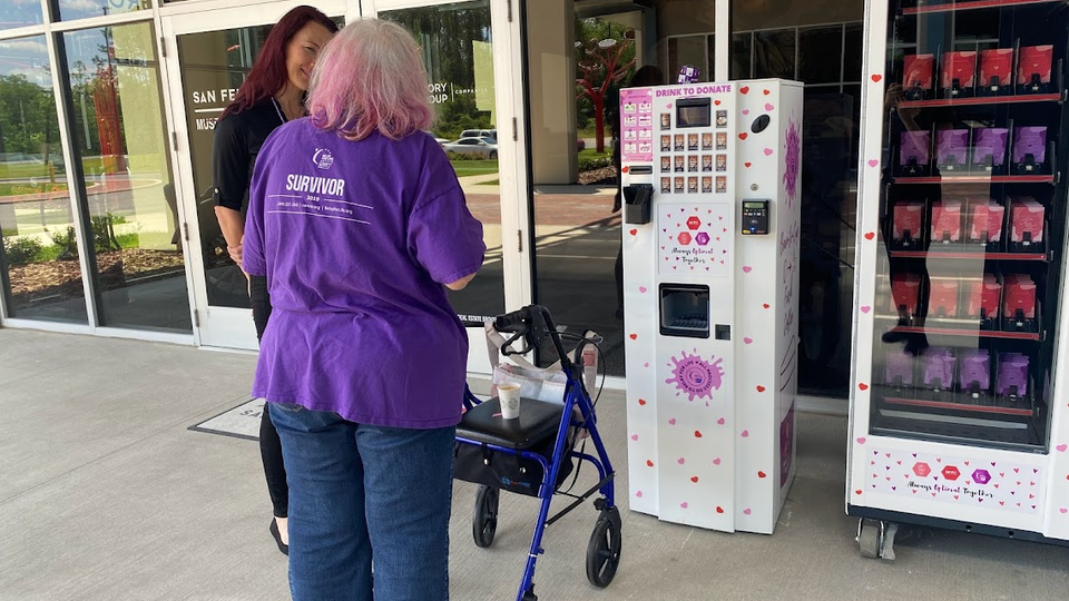 The Donation Station dispensed kindness challenge cards that encouraged spreading kindness in the community. The machine's ad topper displayed facts about cancer and kindness.