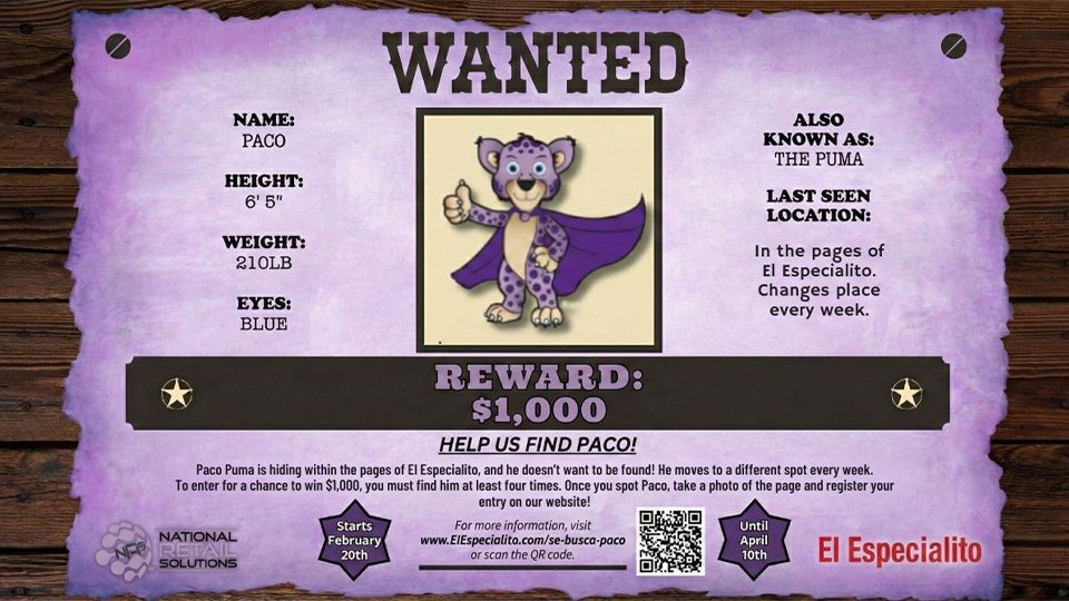 National Retail Solutions (NRS) is proud to announce its collaboration with El Especialito, the nation’s largest Spanish-language weekly newspaper, to launch the “Where’s Paco?”, community print contest.