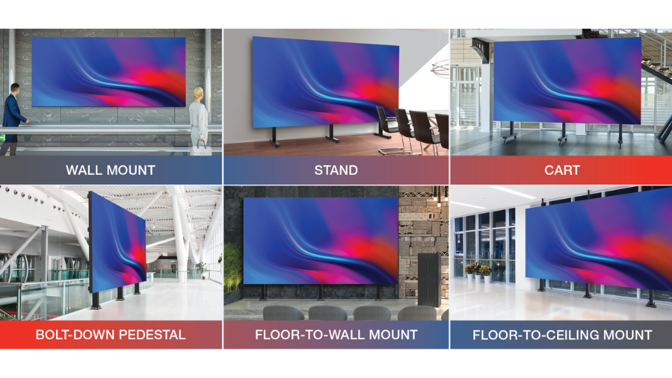 The substructures are available in preconfigured models (up to 8x8 on specific models) or can scale to any customer size and configuration requirements. The now lighter patent-pending Universal Spacer (sold separately) provides vertical extrusion spacing based on preconfigured display size options. It can also be used as a caliper for non-standard display sizes.